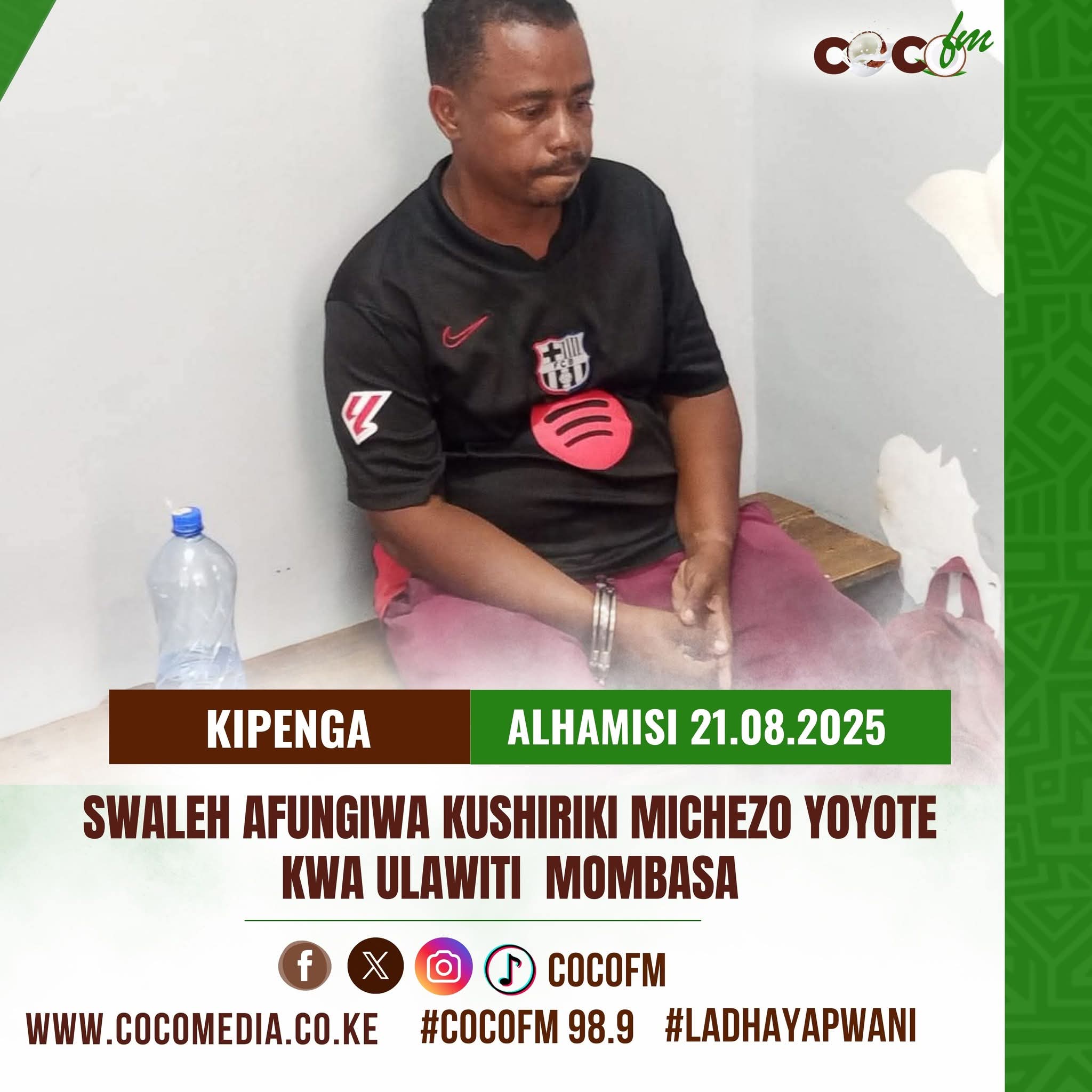 Swaleh anatuhumiwa kwa kosa la kumnajisi mtoto wa umri wa miaka 12 madai anayodaiwa kuyatekeleza kati ya Januari na Agosti 14, 2025, katika eneo la uwanja wa soka wa Fort Jesus, eneo bunge la Mvita.